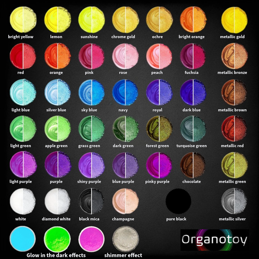Select here the colors for your custom color toys and mail us your choices to: info@organotoy.de